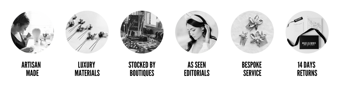 DESIGN NOTES | Sometimes you want something a little more abstract that isn’t flowery or too detailed … thats when these designs are perfect. I love the way the modern shapes reflect and refract the light making the pieces delicate but unfussy. Made with crystals in glass shard shapes and some antique Swarovski beads to add a little softness and gold or silver plating. The pieces are light, comfortable and easy to wear with modern dresses with their paired back elements. There’s a variety of crowns, pins and jewellery to make your perfect combo.