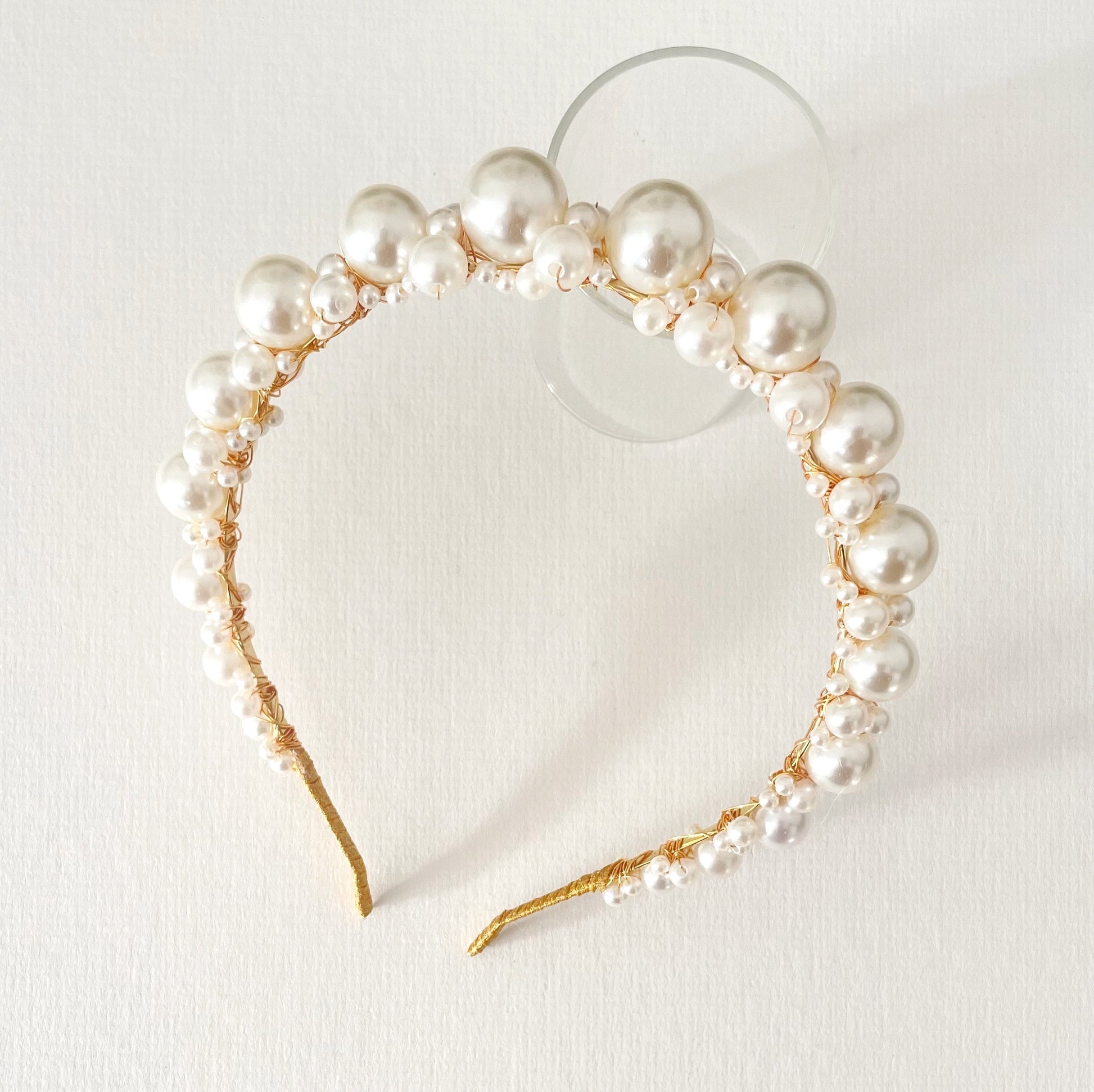 Mest Freya, made with bunches of pearls all gathered together to create a luxe headband!